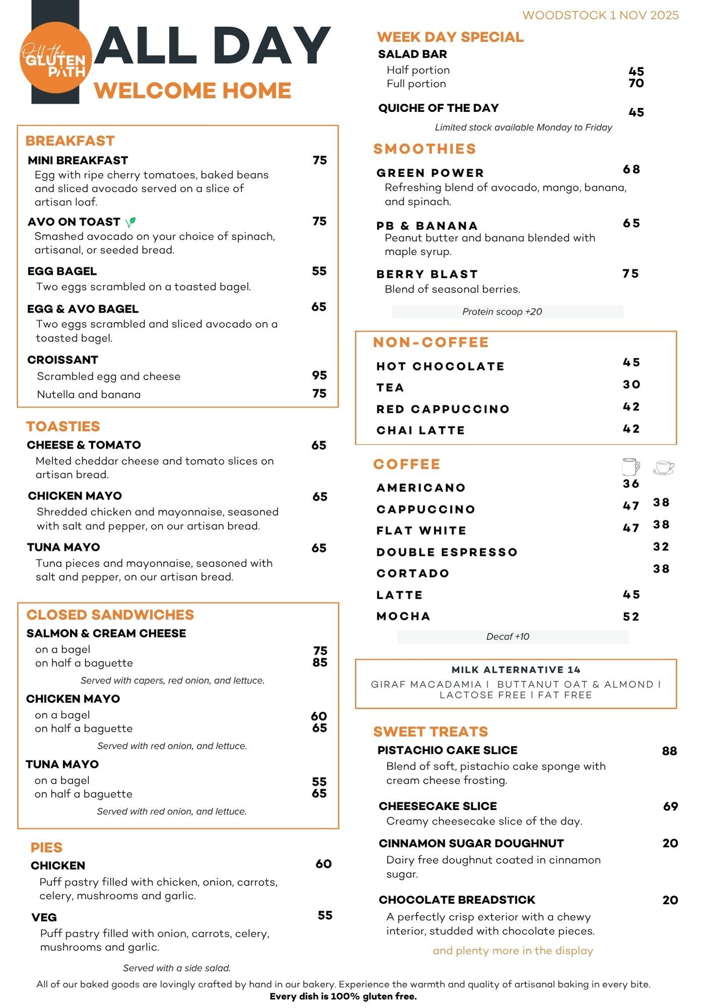Menu @ Woodstock Bakery (Halaal Friendly)
